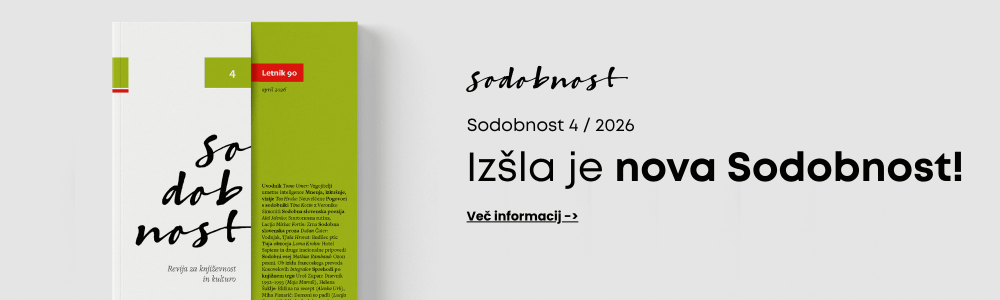 Knjižne novosti Sodobnost 3/2026 9.00 €Dodaj v košarico Žirafe imajo nenavadno veliko srce 24.90 €Dodaj v košarico Lepa kot osmica 24.90 €Dodaj v košarico Hotel Hudimir 22.90 €Dodaj v košarico Zgodba o gospodu Ptiču 22.90 €Dodaj v košarico Knjižna škatla hvaležnosti 34.90 €Izberite možnosti Ta izdelek ima več različic. Možnosti lahko izberete na strani izdelka Sodobnost 1-2/2026 14.00 €Dodaj v košarico Petelinova minuta 21.90 €Dodaj v košarico Gerdi nese pismo 16.90 €Dodaj v košarico Iskra upanja, iskra vžigalice 24.90 €Dodaj v košarico V prah se povrneš 24.90 €Dodaj v košarico Opazovalec ptic 26.90 €Dodaj v košarico Zgodba o Pipetu lisjaku 24.90 €Dodaj v košarico Uniči ta dnevnik 19.90 €Dodaj v košarico Sodobnost 12/2025 7.00 €Dodaj v košarico Sodobnost 11/2025 7.00 €Dodaj v košarico REVIJA SODOBNOSTOTROŠKE IN MLADINSKE KNJIGEKNJIGE ZA ODRASLEZMENEK S KNJIGOLONČKI, ZVEZKI IN OSTALA ROPOTIJAPOGOVORI Z USTVARJALCINAŠA MALA KNJIŽNICAODPRTA KNJIGA: GG4ABRALNI VLAKNOVICEAKCIJSKA PONUDBAO NAS