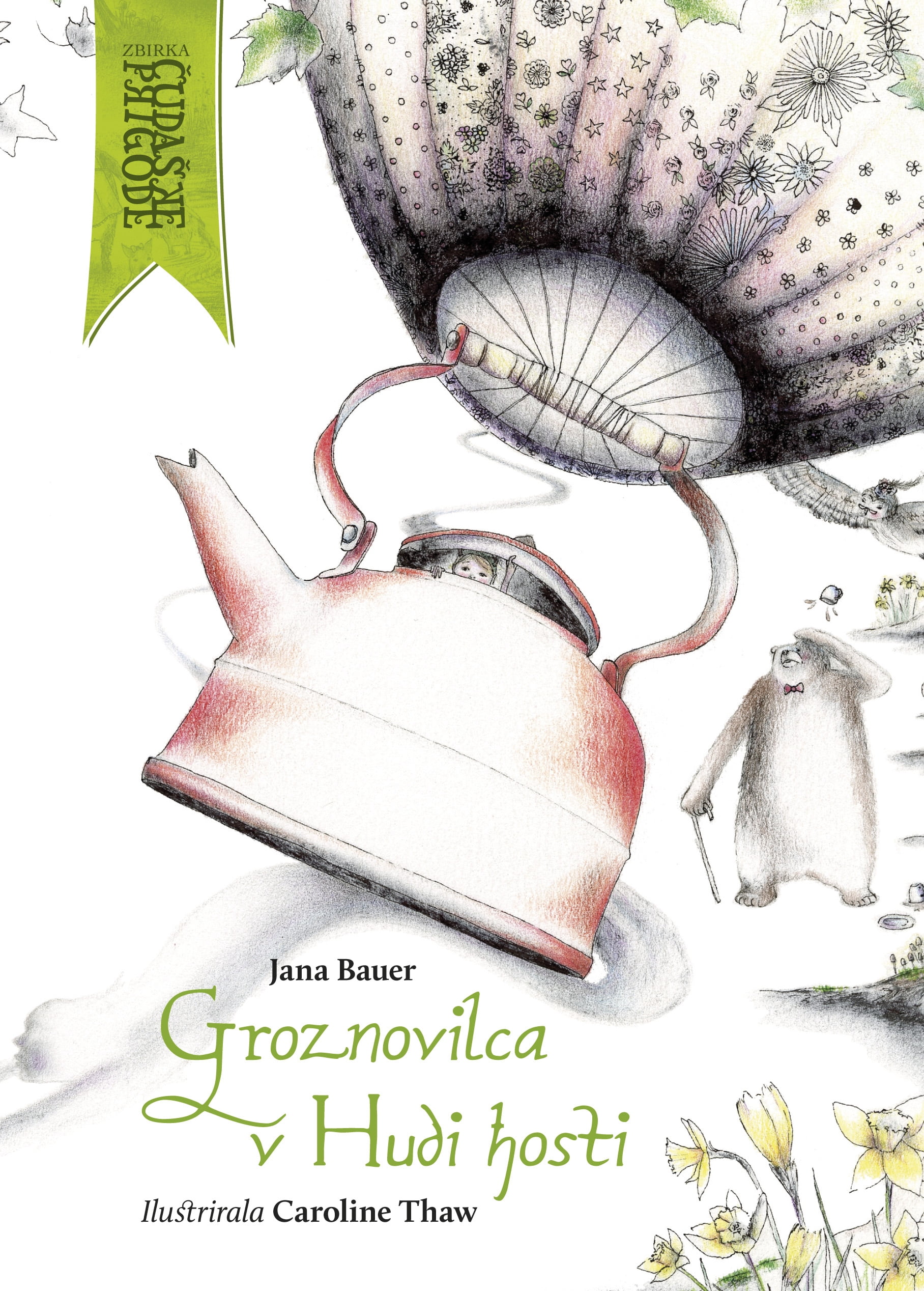Proti Hudi hosti je letelo nekaj čudnega. Majhen zakrpan balon s čajnikom namesto košare. Zapletel se je v trnove robide in obtičal. Pokrov čajnika se je s treskom odprl. Ven je prilezlo malo bitje, namrščeno. Strašansko besno. V poletni oblekici in s čepico, iz katere sta rasli nekakšni rogovili. Groznovilca! Prebivalci Hude hoste še slutijo ne, kaj jih čaka …