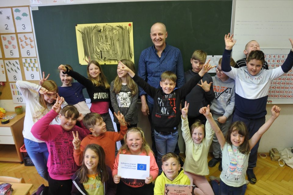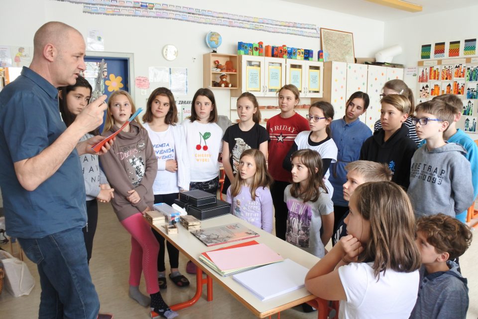 Jan De Kinder pa je s svojim kamišibajem navdušil otroke tudi po osmih osnovnih šolah. Pokazal jim je, s čim in kako najraje riše, na kakšne zanimive načine lahko ustvarijo knjigo, nato pa so se v ustvarjanju preizkusili tudi sami in izdelali čudovite male knjižice o duhovih, kraljih in kraljičnah, najljubšem športu, najljubši živali … Skratka, domišljija ni poznala meja!